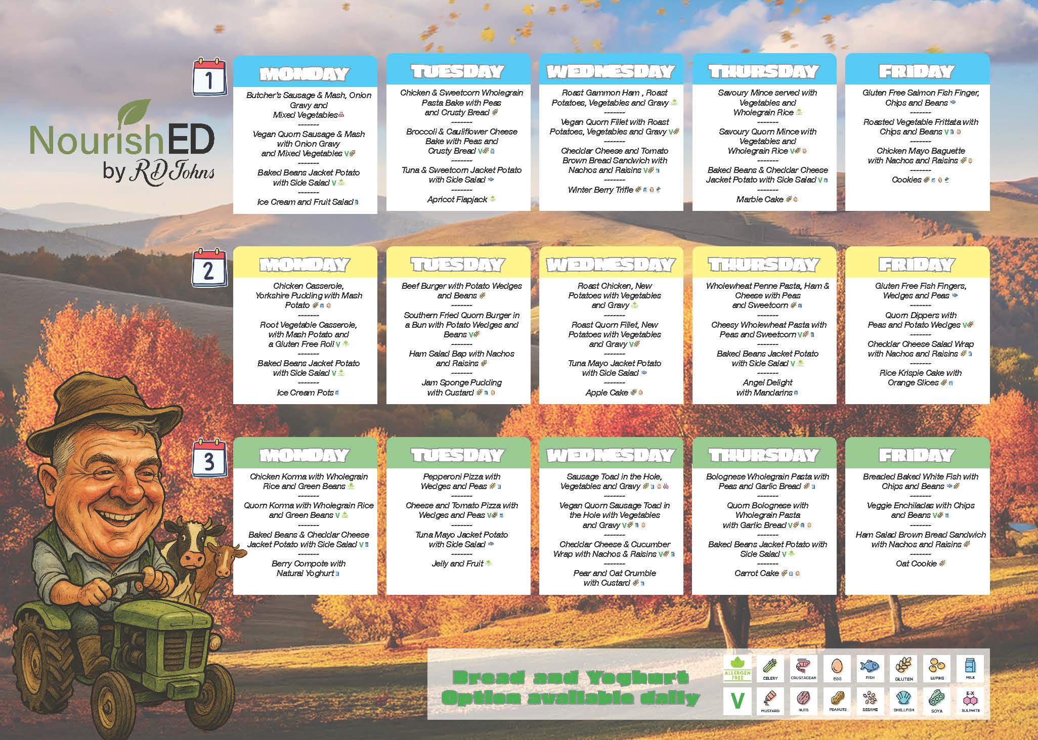 We have a 3 week rolling menu following the School Meals Food Standards